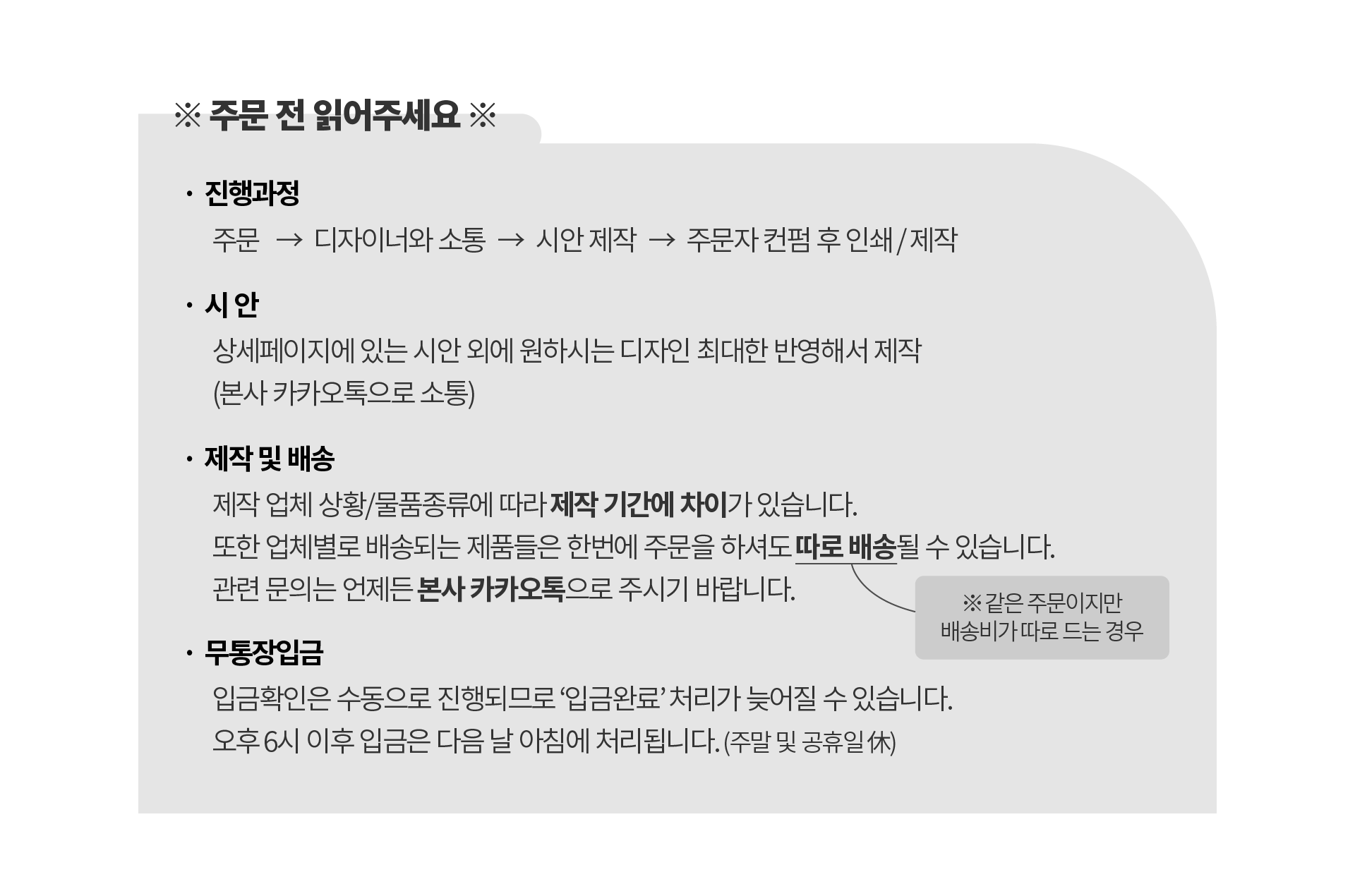 주문 시 카카오톡으로 시안 관련해서 연락드리겠습니다.
