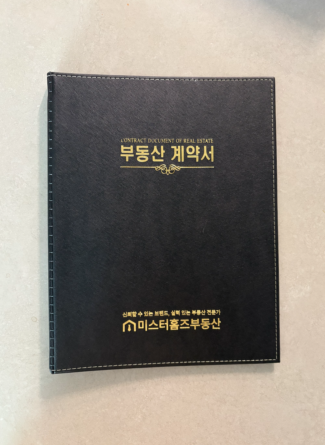 가죽 + 금박인쇄가 되어있는 하드커버 고급 계약서 홀더입니다.